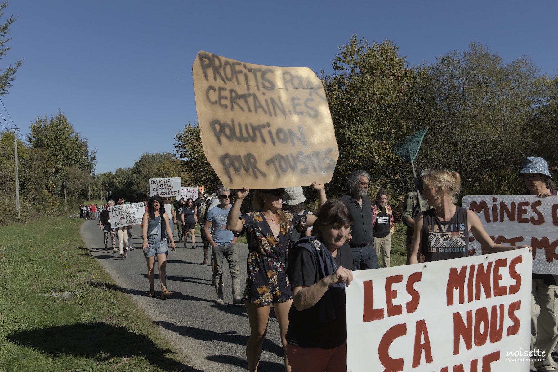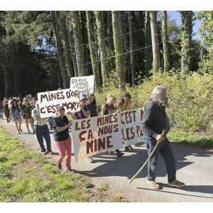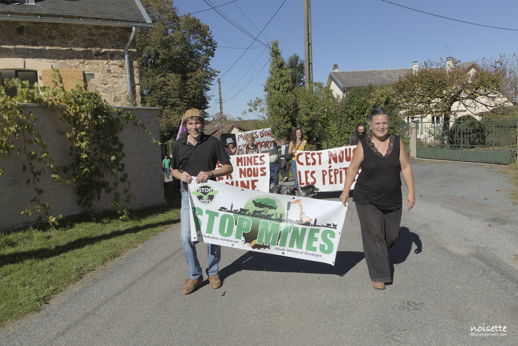 Mine de rien. C’est le nom donné par l’association Stop Mines 87-24 à un week-end de fête et de mobilisation. C’était les 12 et 13 octobre, à Laurièras, sur la commune de Saint Yrieix la Perche (Haute-Vienne). Le dimanche, une marche silencieuse a réuni une centaine de personnes, de tout âge, de toutes catégories sociales. Cette marche s’est rendu devant les grilles de deux endroits où la Compagnie Minière Arédienne (CMA) qui n’a d’arédien que le nom... a déjà entrepris plusieurs carottages.